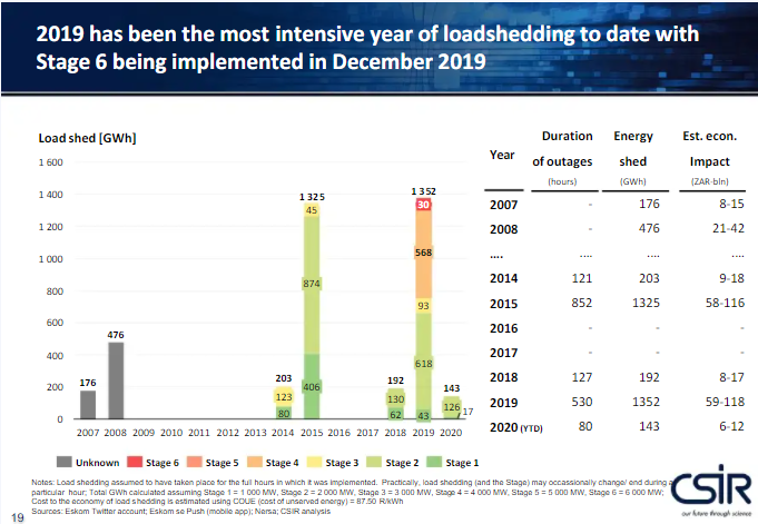 - 2019 had a duration of 530 hours of load shedding ,which equates to 265 x 2 hour load shedding,